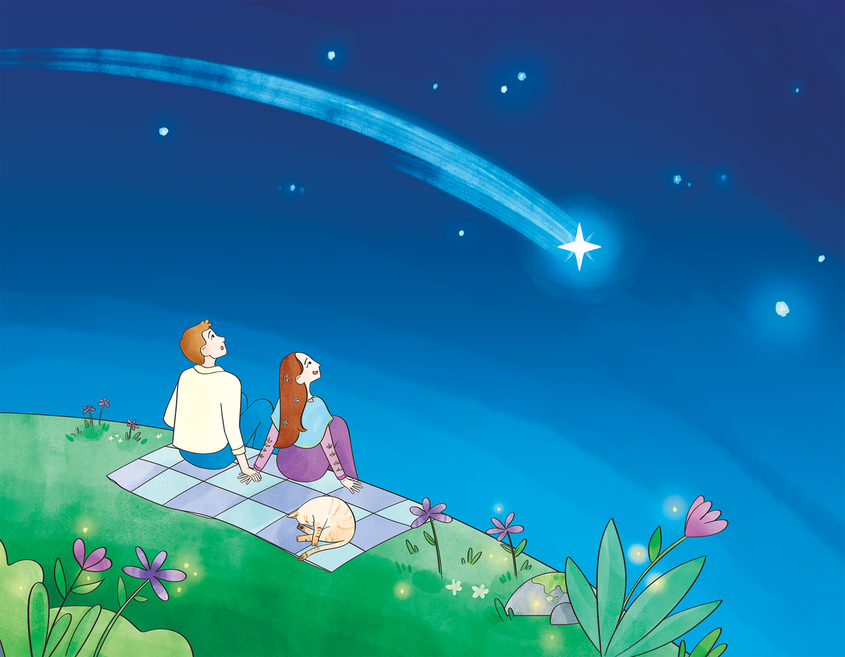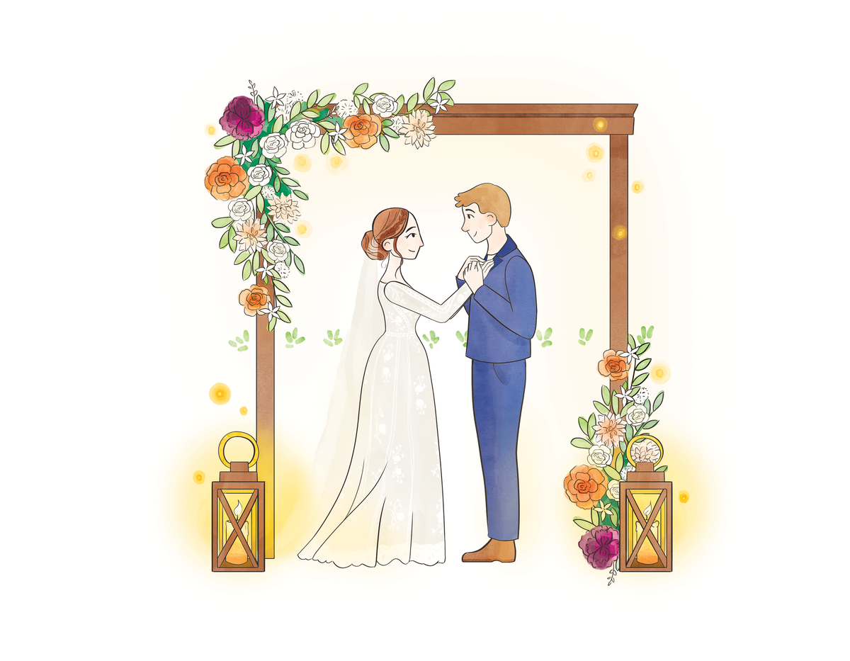 This illustrated book was created as a wedding-day surprise gift. It tells the story of how two people met and fell in love. Each page was illustrated around real moments, memories, and small details that mattered to them.