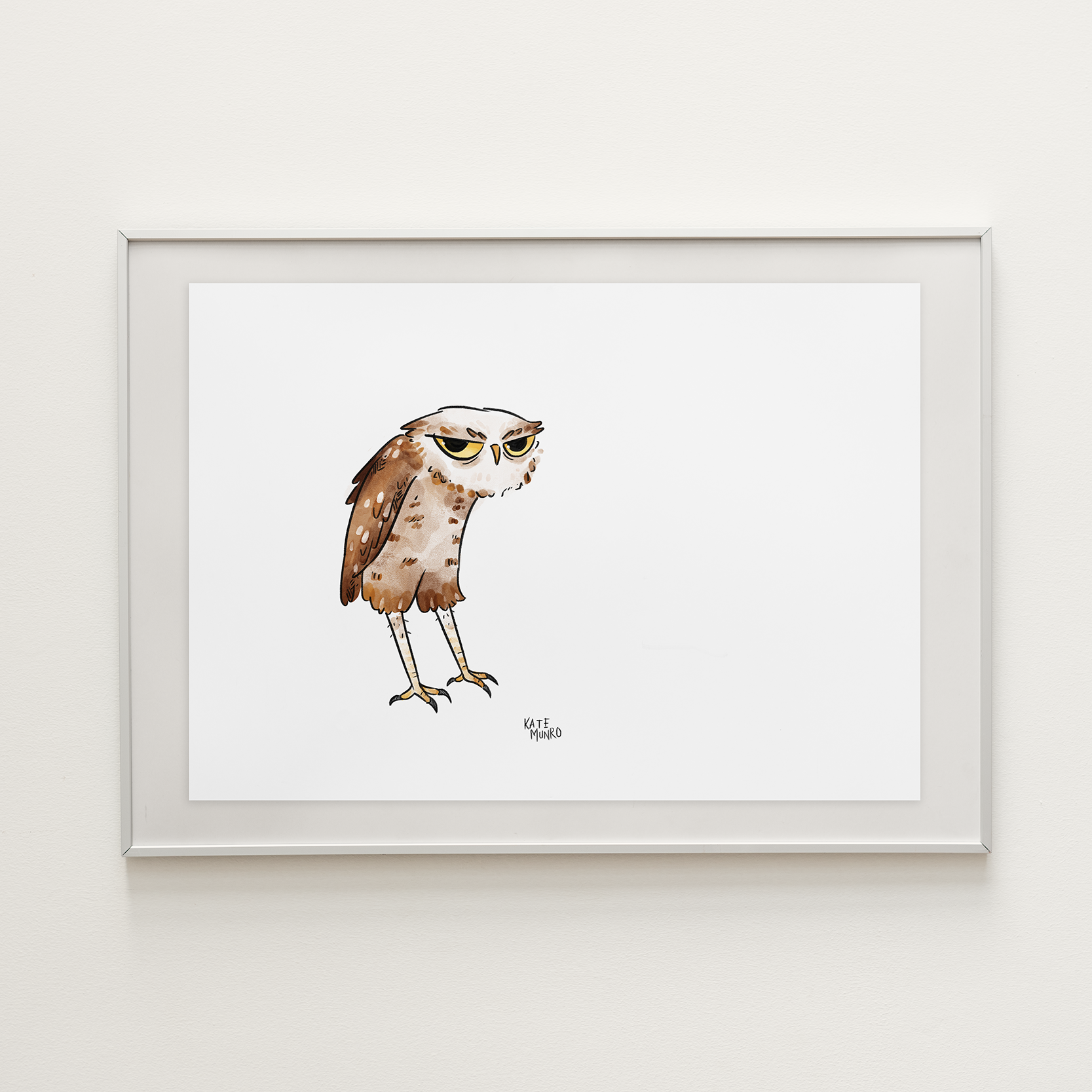 A digital watercolour piece of an unbelievably tired and grumpy owl. A long nap and a snack is certainly needed.